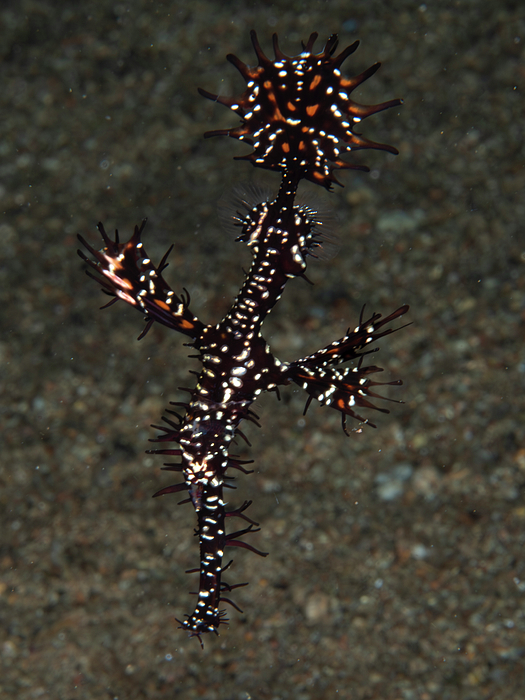 Ghost pipefish are notorious for blending into their environment, so photographing them is often challenging. We found them on most dives in Dumaguete, so I was able to be selective and only photograph the ones that were in a background that contrasted with their elaborate camouflage.