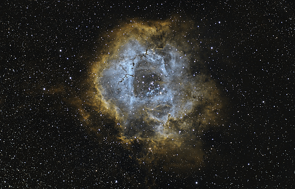 The Rosette Nebula is a bright emission nebula around a cluster of stars in the constellation of Monoceros. I really like the texture and dark dust lines in this object.